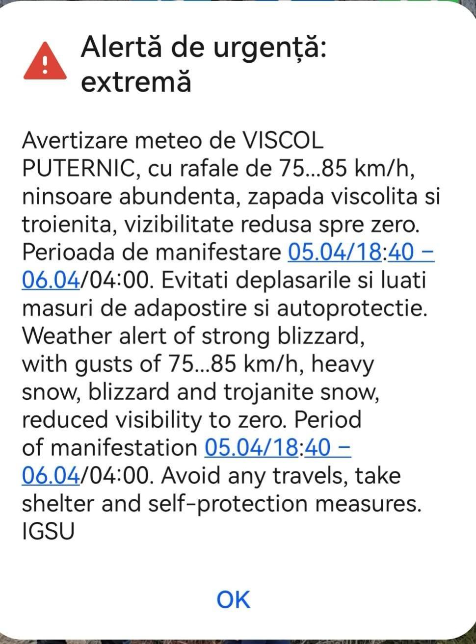 A fost emis Cod Roșu pentru Iași și Botoșani de ninsoare abundentă și viscol puternic/ Se închid drumuri