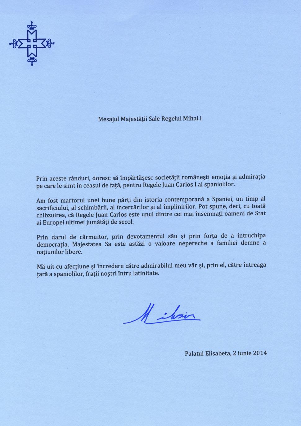 Abdicarea lui Juan Carlos: Mesajul Majestății Sale Regelui Mihai I