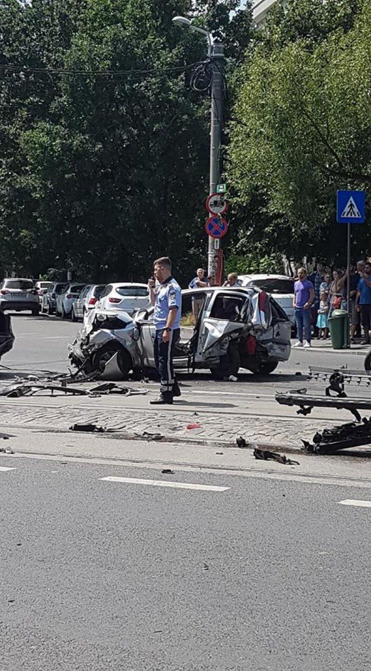 Accident grav în București. Șofer urmărit de poliție, șase mașini implicate