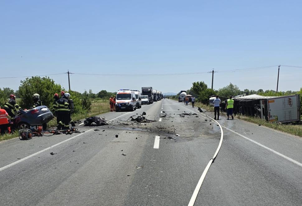 Accident grav pe centura Lugojului. O șoferiță de 34 de ani a intrat frontal într-un TIR de pe contrasens. Tânăra a murit