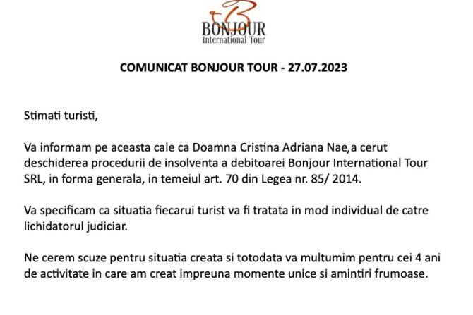 Agenția de turism Bonjour Tour a intrat în insolvență / Ce se întâmplă cu turiștii