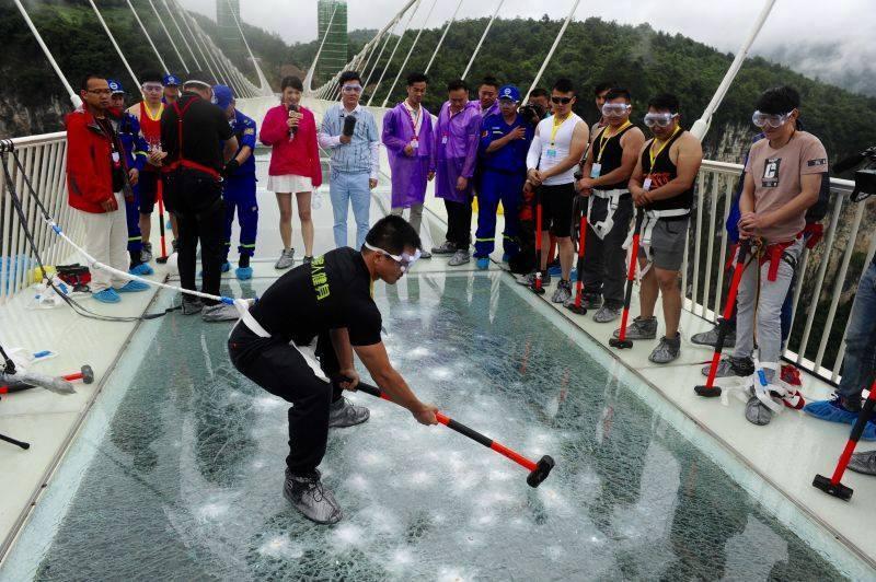 Ai face așa ceva? Cel mai mare pod de sticlă, lovit cu barosul