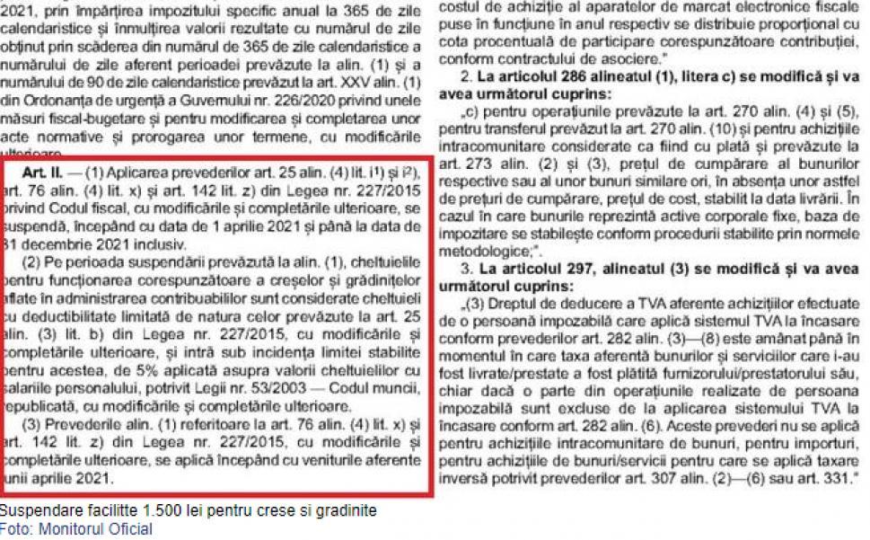 Ajutorul de 1.500 lei pentru creșă/grădiniță, suspendat. Surpriza din Monitorul oficial