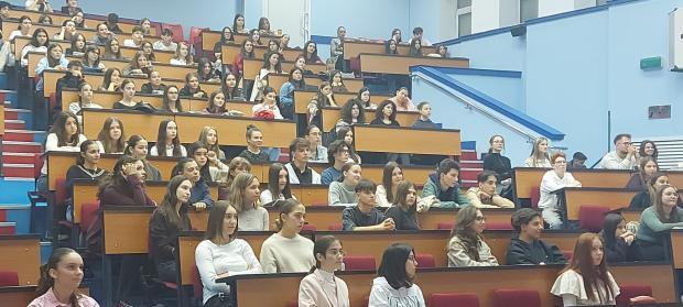 După prezentarea programului și obiectivelor pentru anul școlar 2025-2026 realizată de Yarina și Sasha, evenimentul a continuat cu seminarul special „Parcursul unui medicinist – studenție, rezidențiat, carieră”, care a oferit elevilor trei perspective complementare.