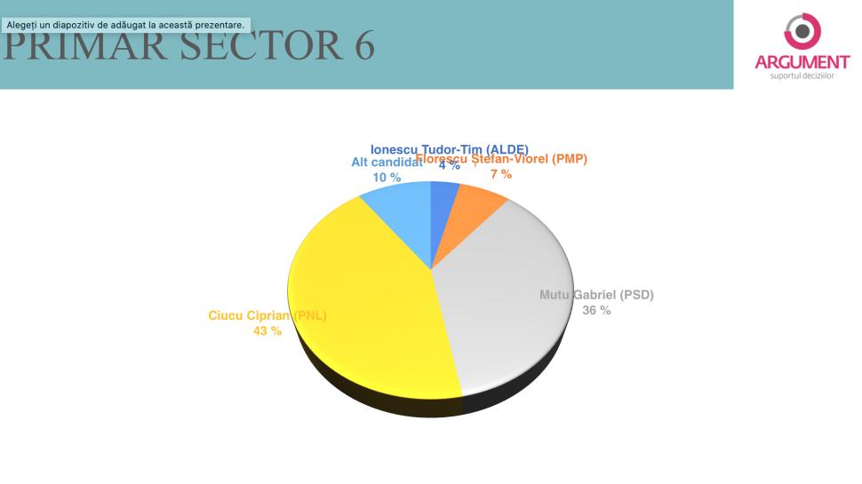 ALEGERI 27 septembrie. Sondaj tip EXIT POLL ARGUMENT. Primărie Sector 6