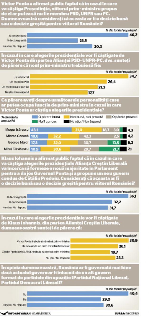 ALEGERI PREZIDENȚIALE 2014. SONDAJ INSCOP: Ce PREMIER vor românii în funcție de cine va ajunge PREȘEDINTE