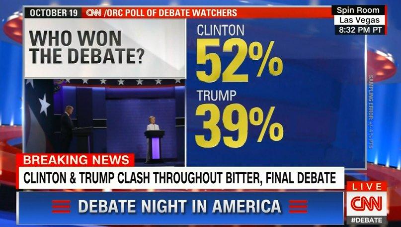 Alegeri SUA: Cine a câștigat ULTIMA dezbatere Clinton - Trump - sondaj