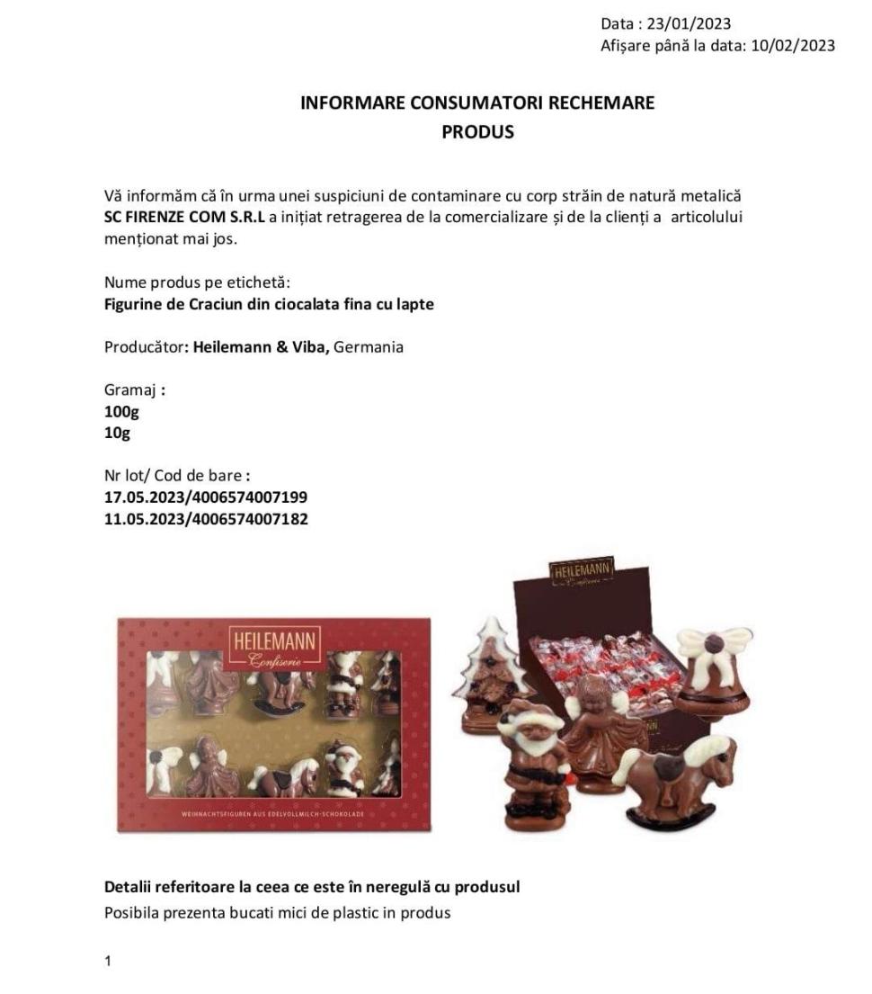 Alertă alimentară în România. Loturi de ciocolată, retrase de la vânzare. Pot conţine bucăţi de metal - Foto în articol