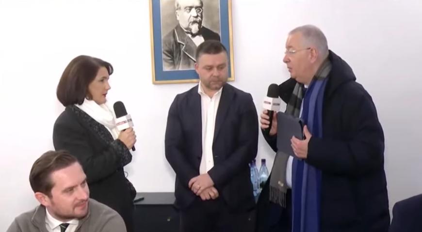 Ciprian Ciucu s-a ridicat de pe scaun și a întâmpinat echipa comună DC News - România TV.