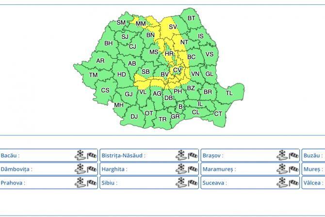 Alertă meteo de Cod Galben în 16 județe. Informare de răcire accentuată, ninsori și vânt puternic. Vremea în București