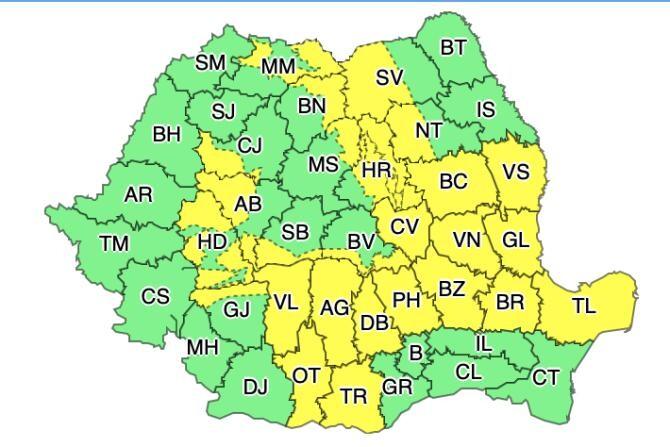 Alerte meteo de Cod Galben de averse, vânt puternic, vijelii și grindină. Urmează o nouă perioadă de răcire accentuată și ploi