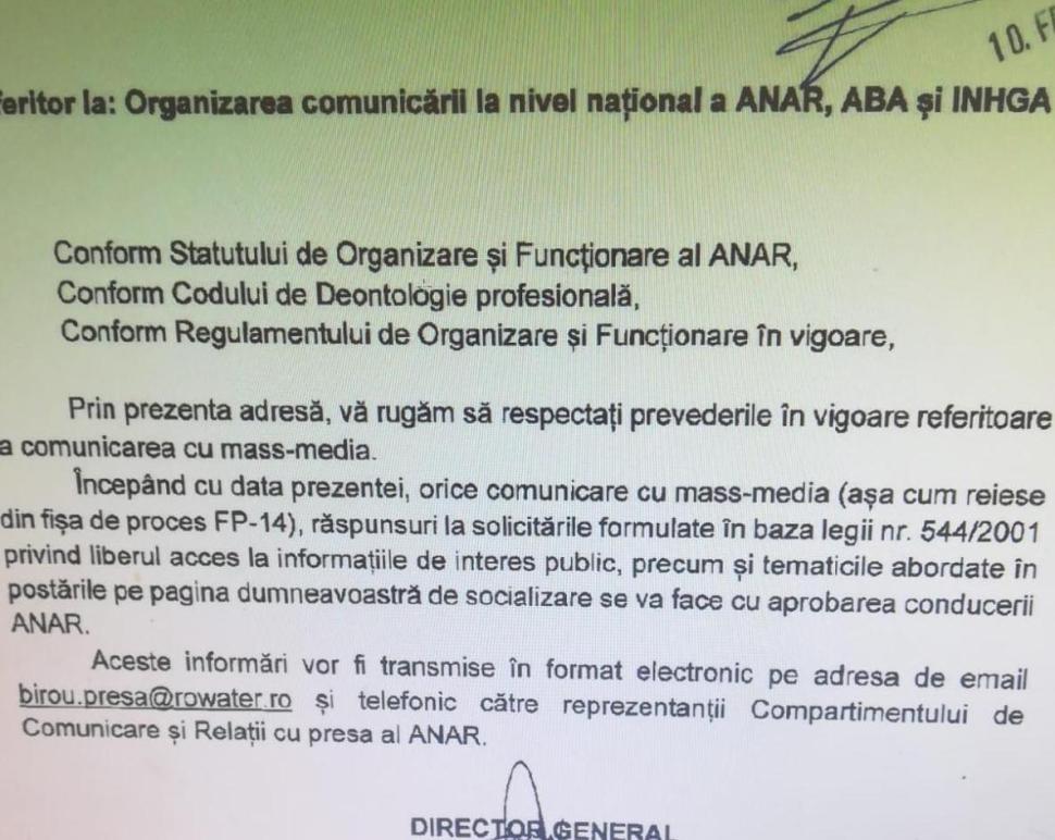 Angajații ”Apele Române” au primit INTERZIS să comunice cu presa. Mesaj intern- Dovada