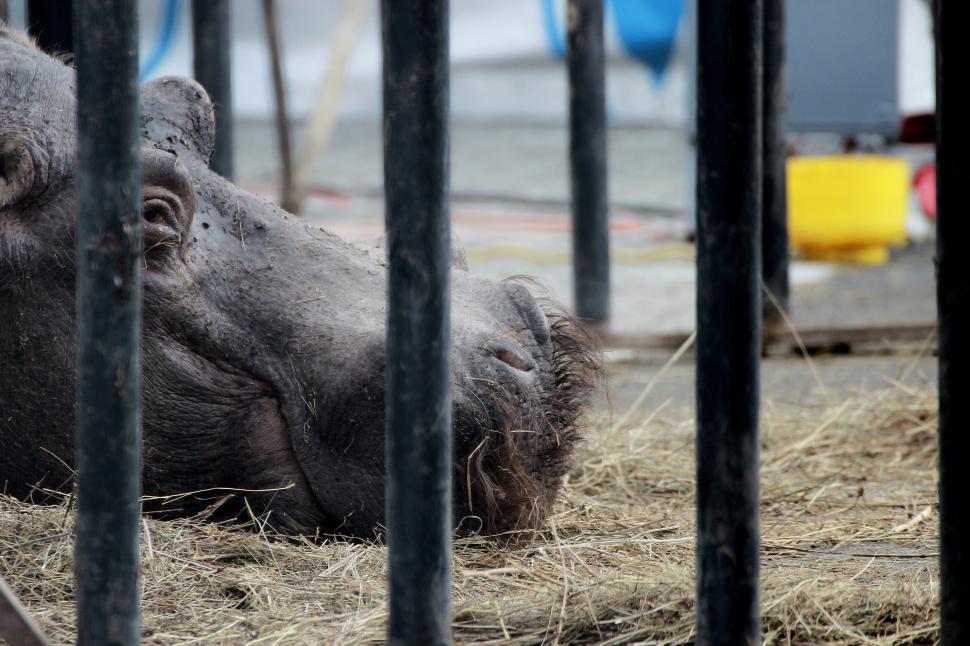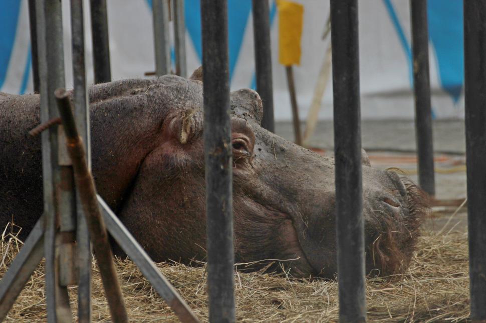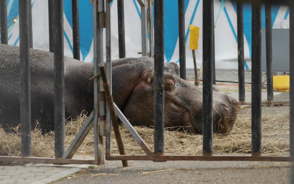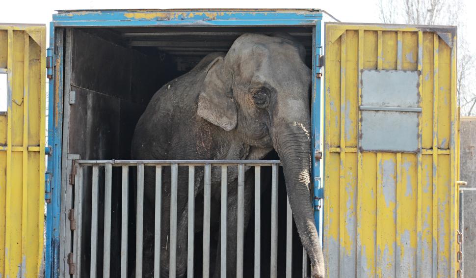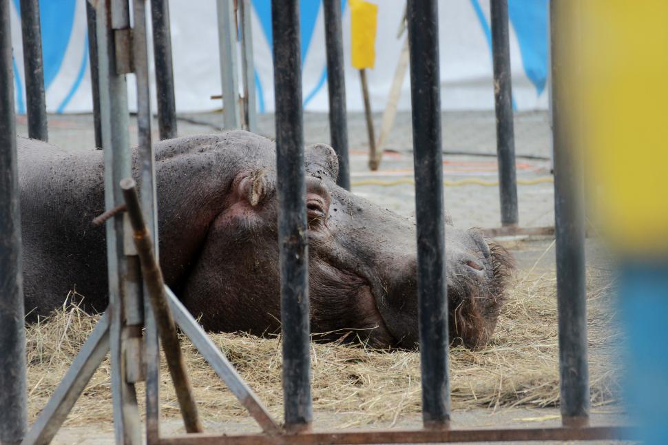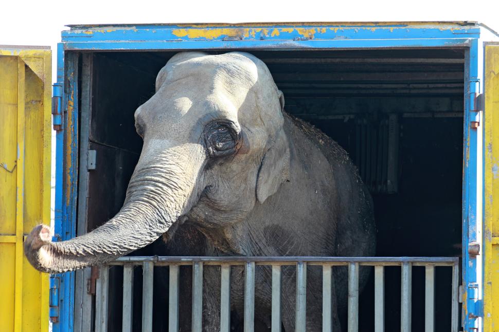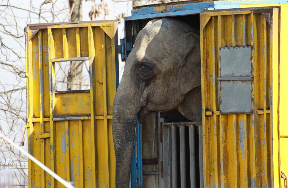 Animale de circ în stare deplorabilă, în parcarea unui hipermarket