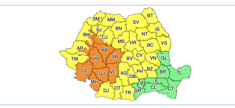 ANM, alertă de COD GALBEN și COD PORTOCALIU. Vreme rea - HARTA ANM cu județele afectate