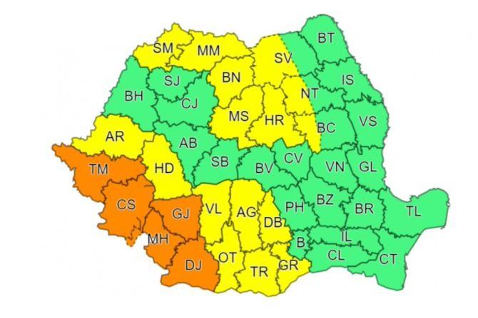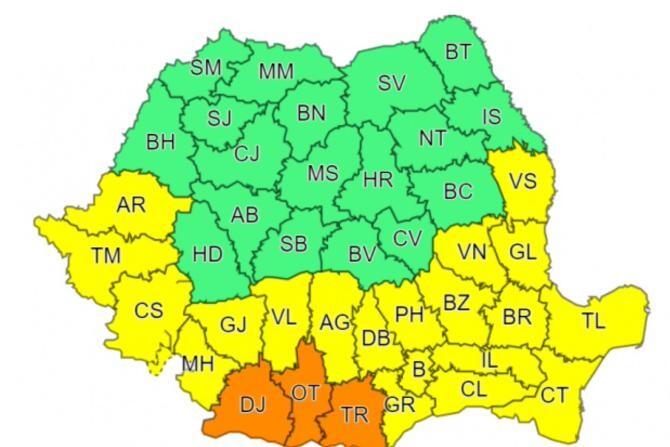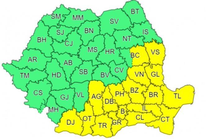 ANM, alerte meteo de furtuni și caniculă. Rafale de vânt și de 100 km/h și cantități de apă de 60 l/mp. Vijelii puternice - HARTA