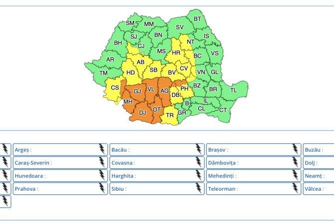 ANM, Cod Galben și Cod Portocaliu de caniculă, dar și de instabilitate și vijelii - 4, 5 iulie 2022. Harta cu zonele vizate