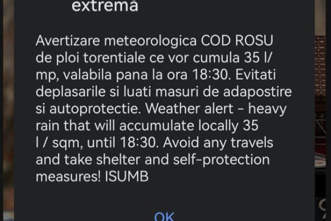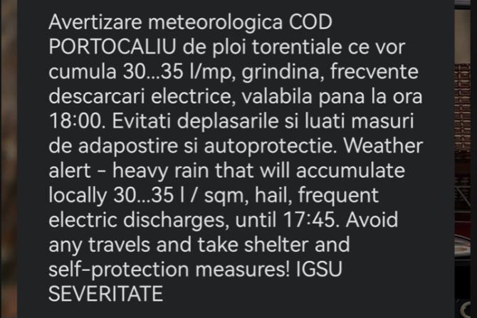 UPDATE: Avertizarea de Cod Portocaliu a fost transformată în Cod Roșu pentru București. A fost emisă ”alertă de urgență extremă”