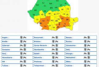 ANM: Coduri GALBEN și PORTOCALIU de ninsori viscolite și ger