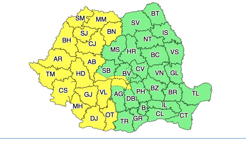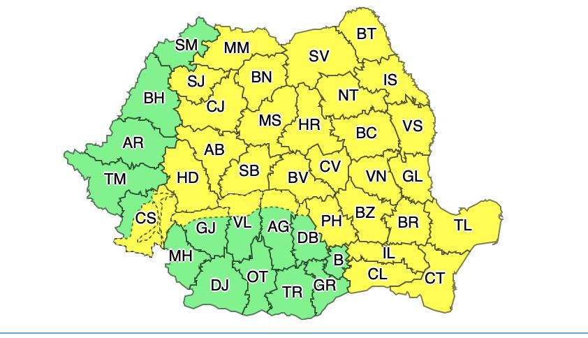 ANM, prognoza meteo. Cod Galben în weekend, alertă de vreme rea - HARTA