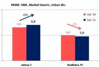 Antena 3, lider pe segmentul de ştiri în septembrie, în cel mai important interval orar