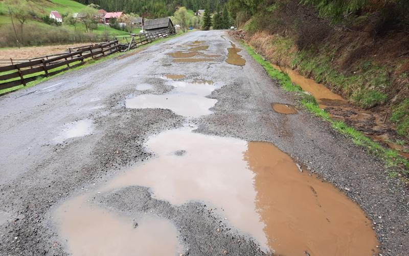 Așa arată un DRUM NAȚIONAL. ”Efectiv intră mașina cu totul în cratere”