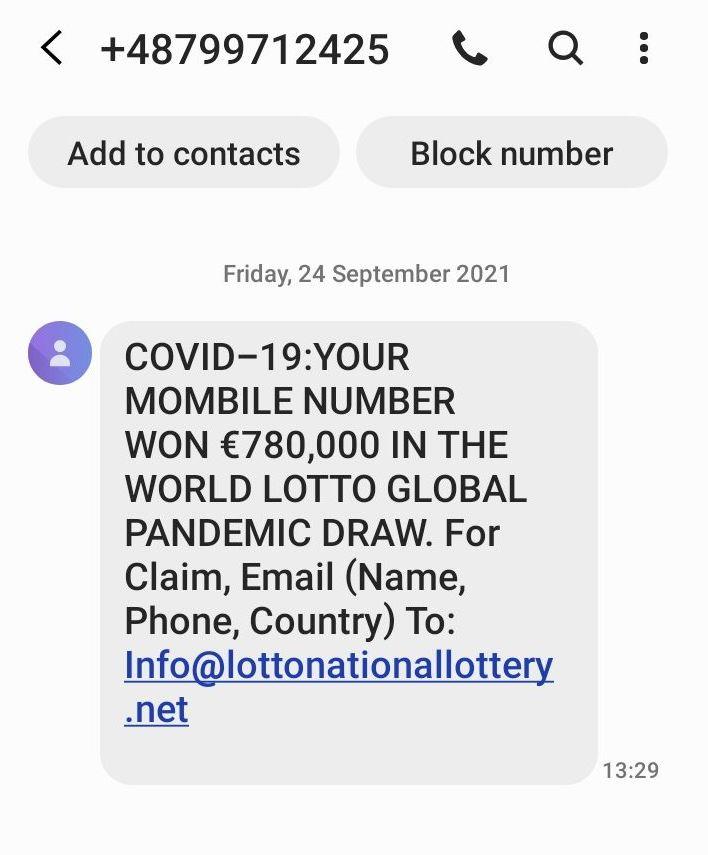 ATENȚIE dacă ai primit acest mesaj. O nouă escrocherie cu 'Loteria mondială COVID'