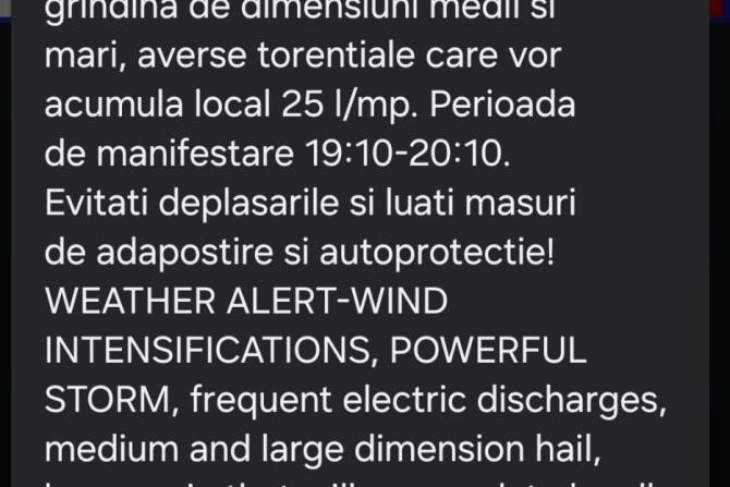 RO-ALERT în București. Alertă extremă de furtună cu grindină de dimensiuni medii și mari