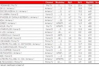 Audienţe 24-30 septembrie: Vocea României a întrecut X Factor. Badea rămâne primul