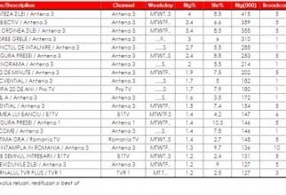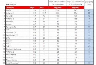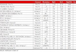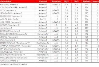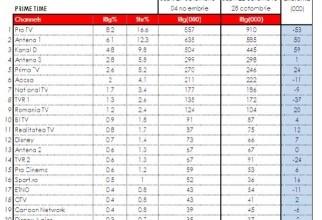 Audienţe 29 octombrie – 4 noiembrie: Badea pe 4, Banciu pe 8