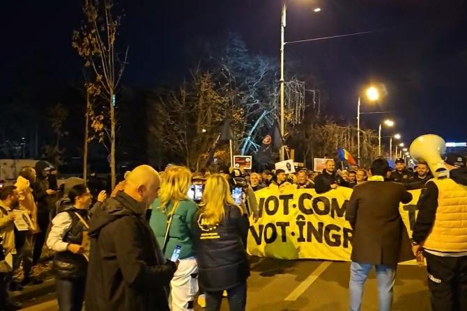 UPDATE: "Ai greșit adresa, băiatu' meu!". Simion, primit de PSD cu pancarte în rusă / AUR, protest cu coșciug, fanfară și dric (VIDEO)
