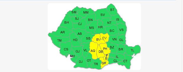 Avertizare meteo de ultimă oră- Cod Galben. Harta ANM