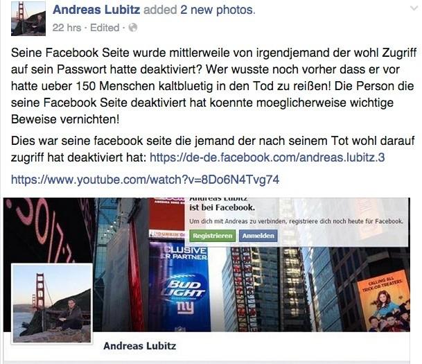 Avion prăbușit în Franța: Mister încă neelucidat privind pagina de Facebook a copilotului Andreas Lubitz