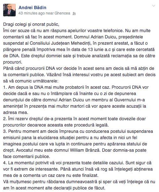 DNA: Andrei Bădin, urmărit penal. B1 Tv, prima măsură