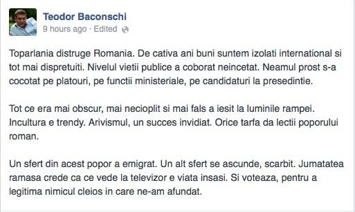 Baconschi, fondator PMP: Orice târfă dă lecții poporului român