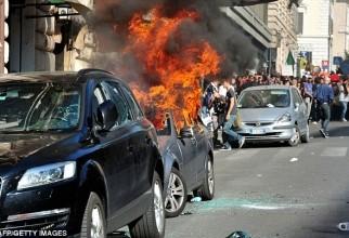 Bănci atacate şi maşini incendiate în timpul manifestaţiei Occupy Rome - VIDEO