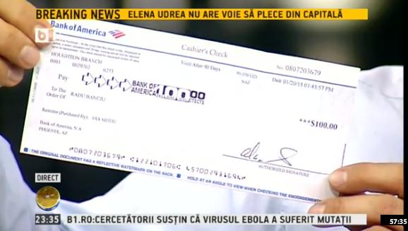 Banciu, cec de 100 de dolari de la o telespectatoare