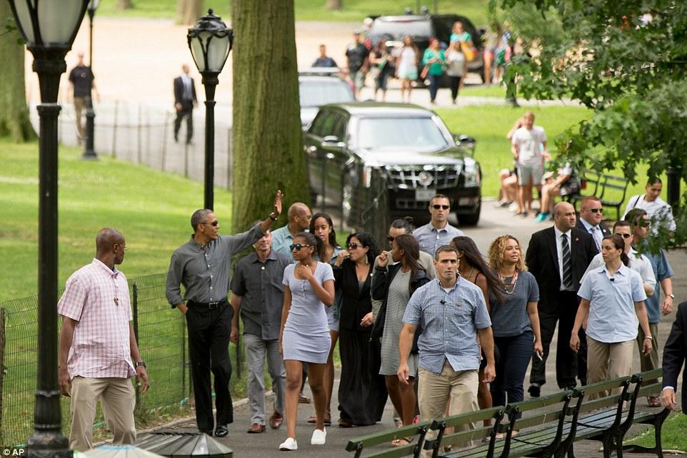 Barack Obama, într-o companie specială, la plimbare în Central Park