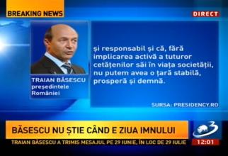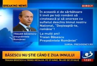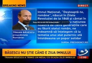 Băsescu, gafă uriașă: A ratat Ziua Imnului Național cu o lună