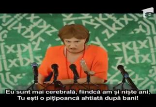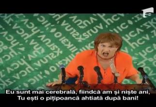 Bendeac o imită pe Andreea Pora. Vezi cum mușcă din cârnat