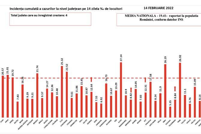 BILANȚ COVID, 14 februarie 2022. Datele zilei în România. Un tânăr de 25 de ani a murit