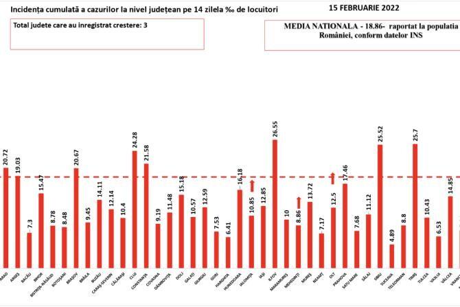 BILANȚ COVID, 15 februarie 2022. Peste 200 de decese. Un tânăr de 29 de ani, din Ilfov, a murit. Era nevaccinat și avea probleme de sănătate