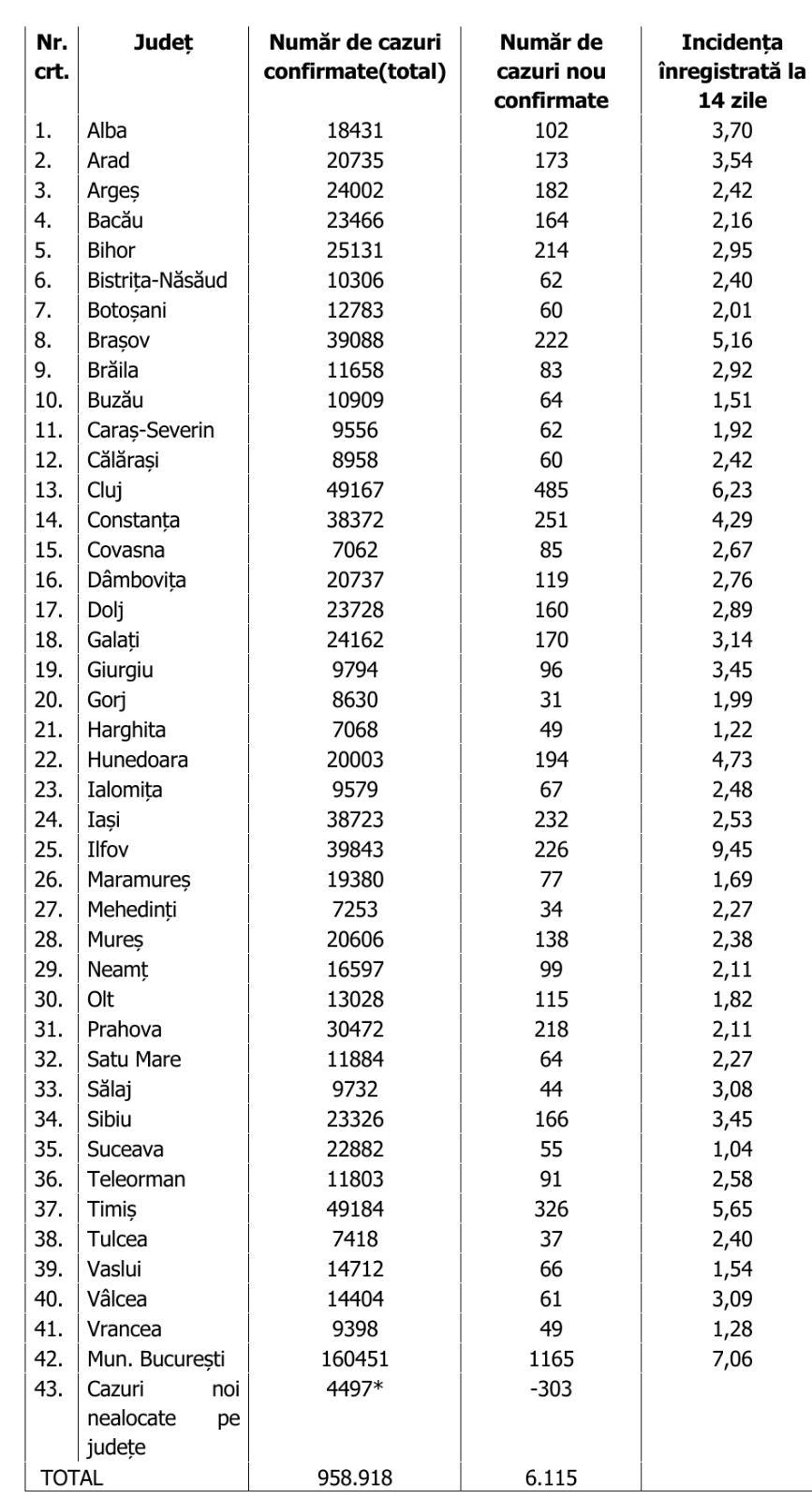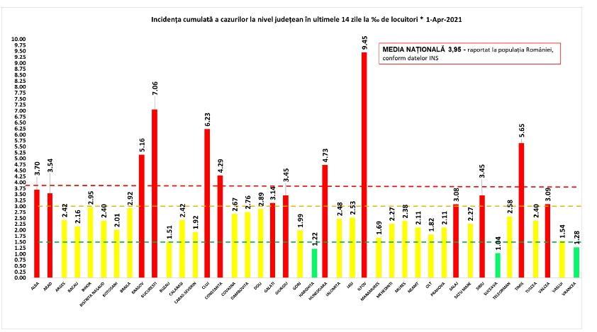 Bilanț COVID-19, 1 aprilie 2021. Raport de infectare pe JUDEȚE