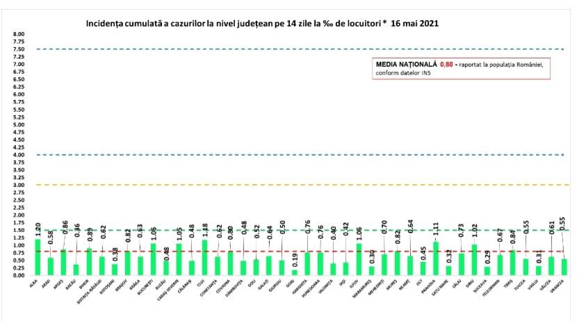 Bilanț COVID-19, 16 mai 2021. Raport de infectare pe JUDEȚE, după prima zi de RELAXARE