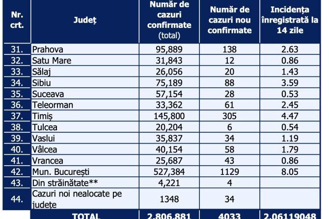 Bilanț COVID-19, 17 martie 2022: 4.033 de cazuri noi de infectare cu SARS-CoV-2