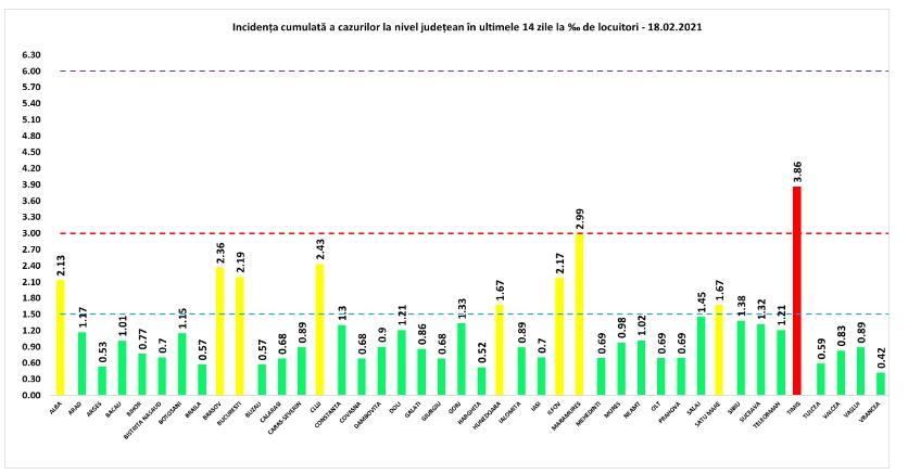 Bilanț COVID-19, 18 februarie 2021. Raport de infectare pe JUDEȚE