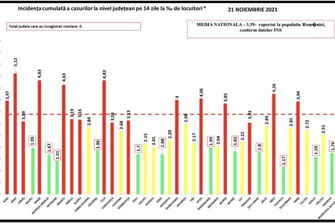 BILANȚ COVID-19, 21 noiembrie 2021. Doi tineri, de 24 și 29 de ani, au murit. Opt pacienți decedați erau vaccinați