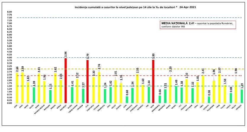 Bilanț COVID-19, 24 aprilie 2021. Raport de infectare pe JUDEȚE