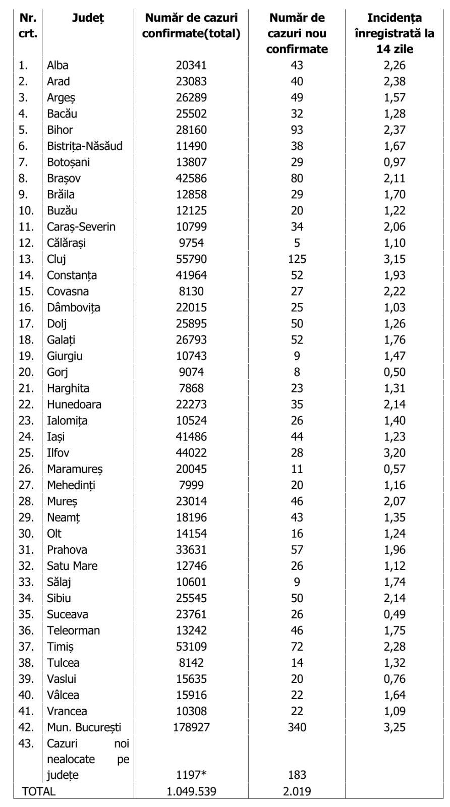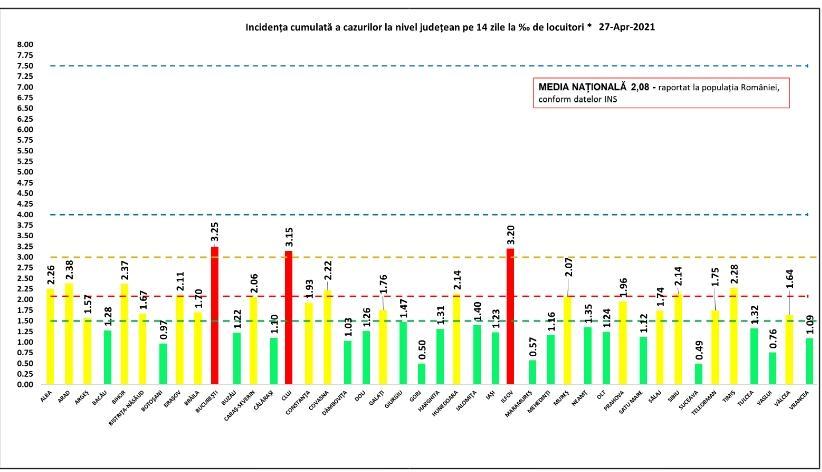 Bilanț COVID-19, 27 aprilie 2021. Raport de infectare pe JUDEȚE