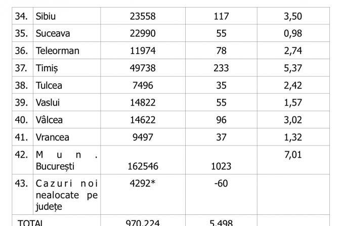 Bilanț COVID-19 în România, rata de infectare pe județe. La cât a ajuns în București