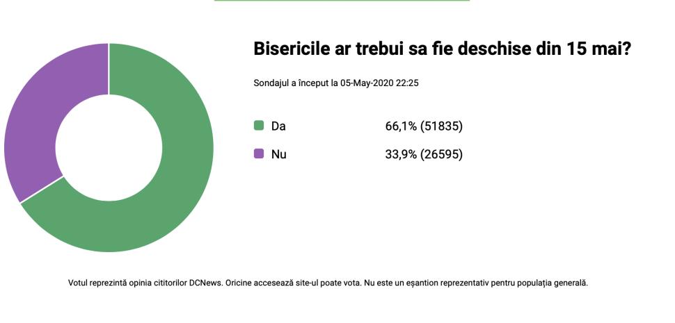 Bisericile, deschise din 15 mai? Rezultat SONDAJ: Peste 78.000 de oameni au votat